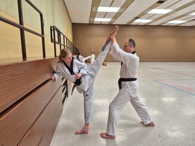 Mit knapp 170 anderen Sportler*innen konnten sie sich dort nach Wahl in unterschiedlichen Gebieten weiterbilden. Bei uns ist die Wahl auf Hapkido-Hankido Grundlagen, Hebeltechniken, Stock- und Messerabwehr unter der Leitung von Josef Römers und Miguel Voßen, Taekwondo Defense: Messer- und Stockabwehr unter der Leitung von Michael Scherer und Dehnen für Kampfsportler unter der Leitung von Mike Paustian gefallen.