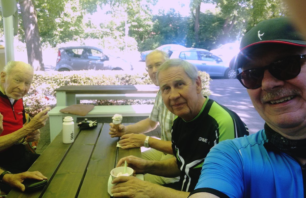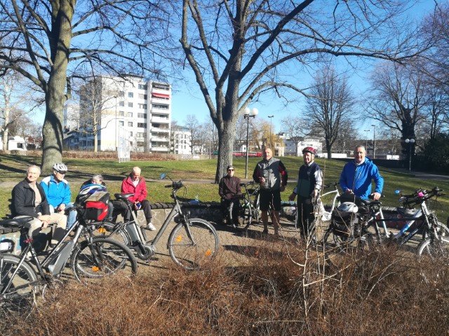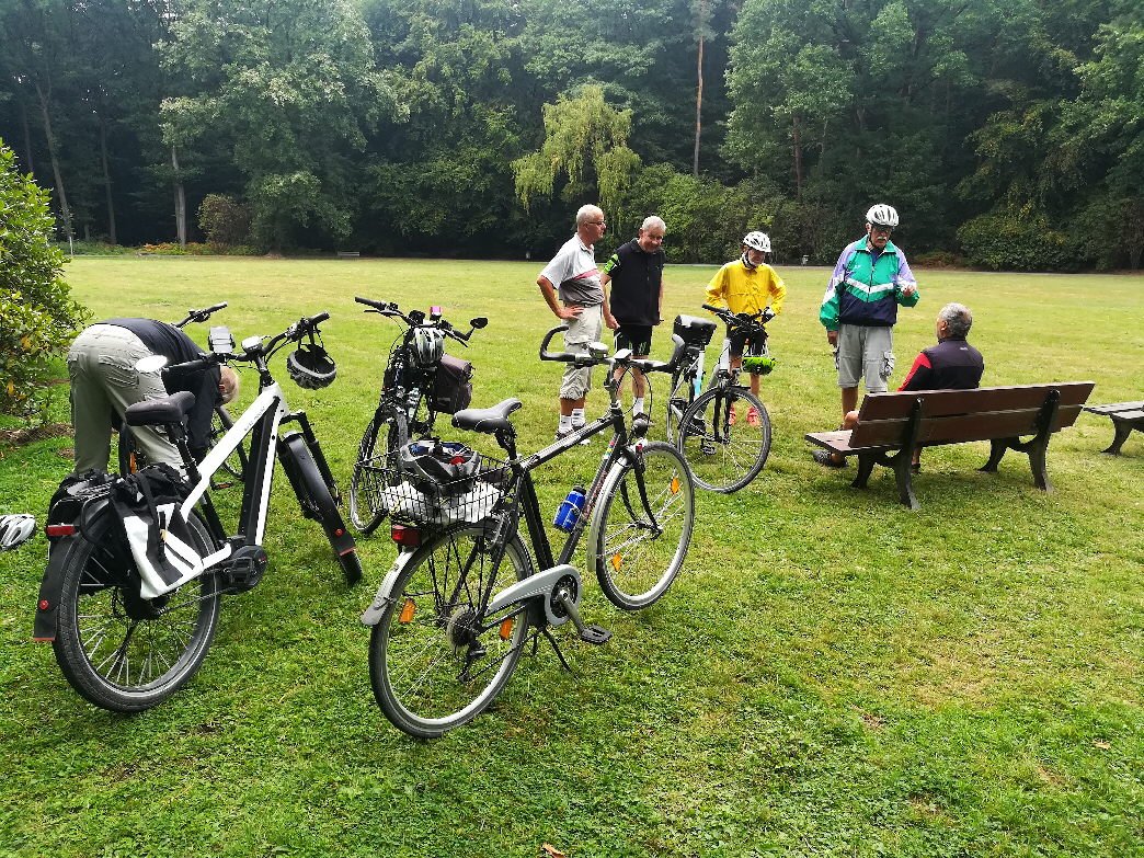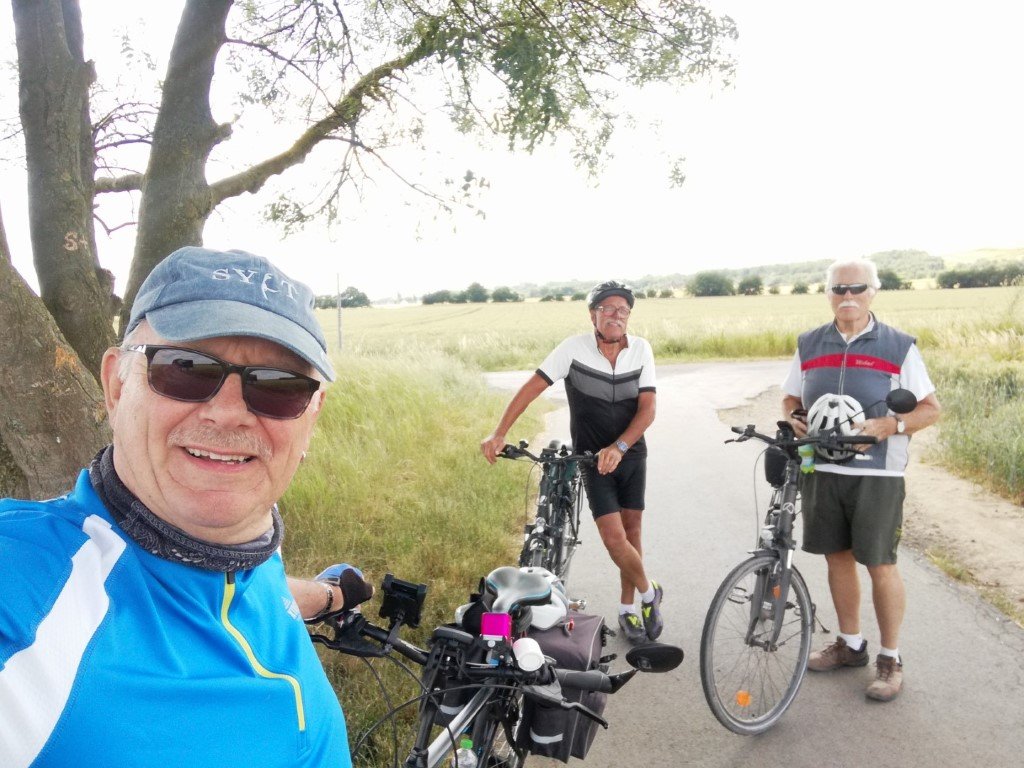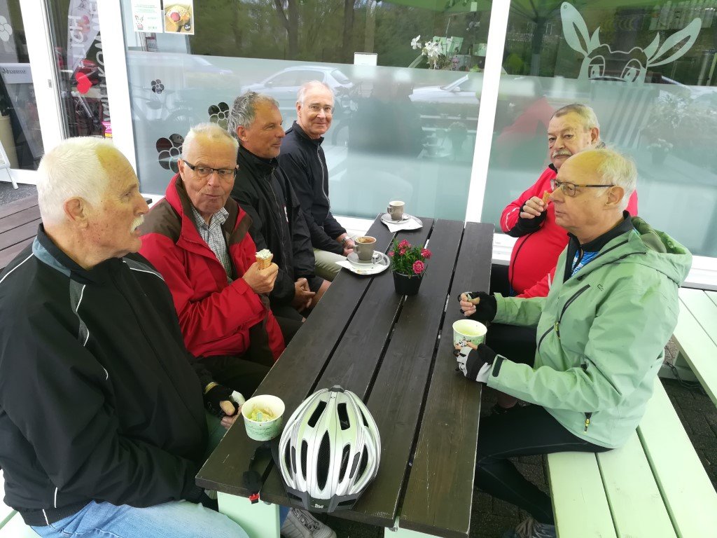 Nach einer ausgiebigen Pause beim City-Bäcker, wo unser Geschäftsführer Reinhard Bergmann für die ganze Truppe eine Runde Kuchen auf sein neues Pedelec ausgegeben hatte, traten wir die Rückfahrt an.