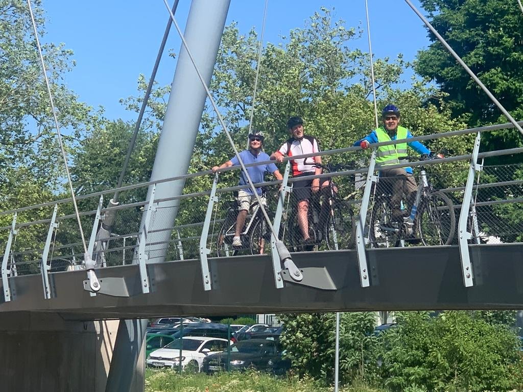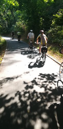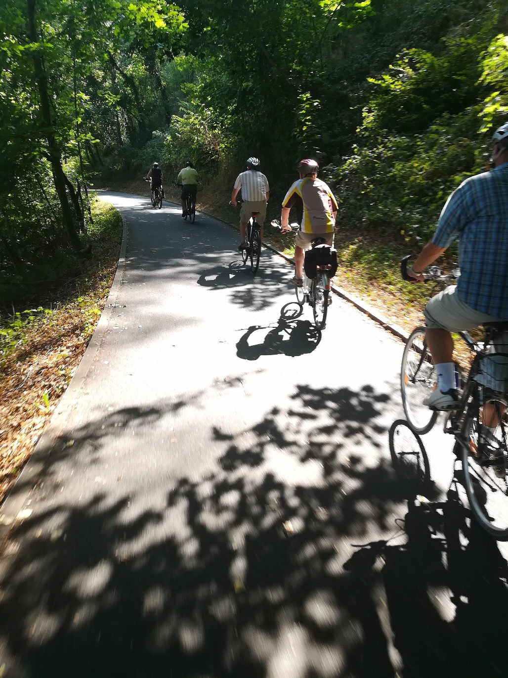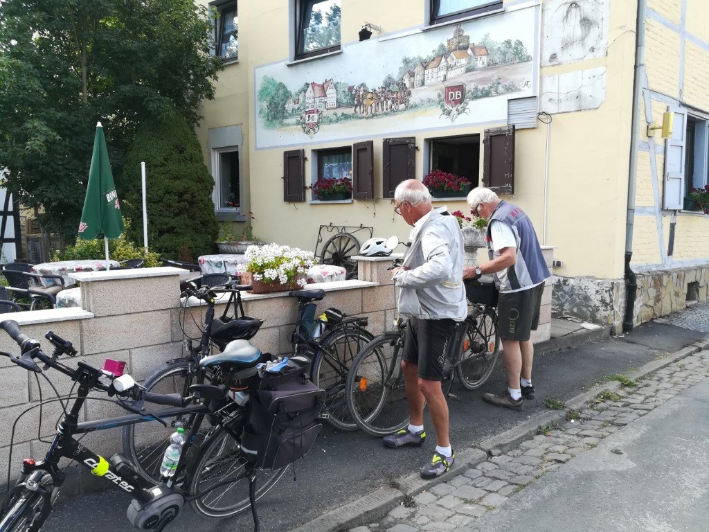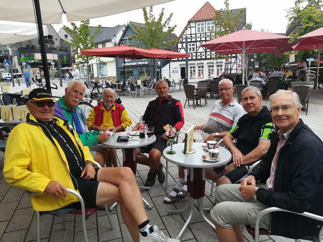 Nach einer ausgiebigen Pause beim City-Bäcker, wo unser Geschäftsführer Reinhard Bergmann für die ganze Truppe eine Runde Kuchen auf sein neues Pedelec ausgegeben hatte, traten wir die Rückfahrt an.