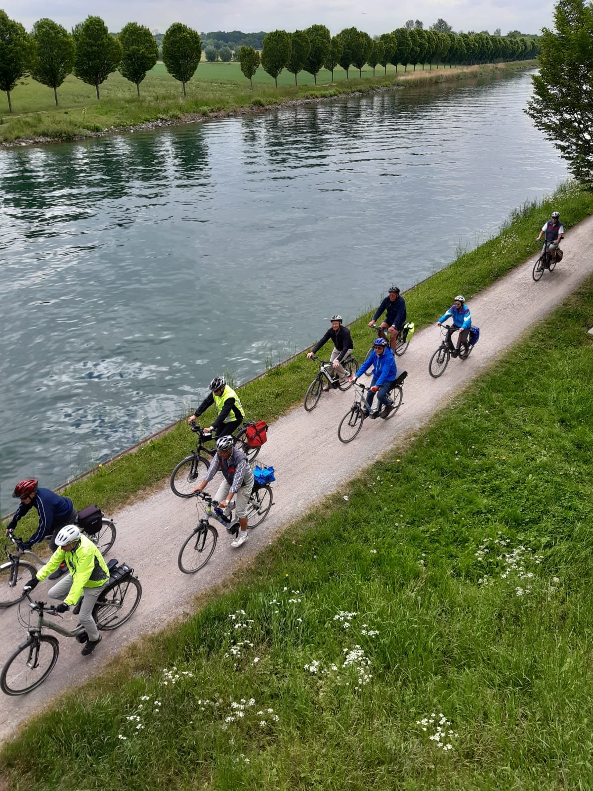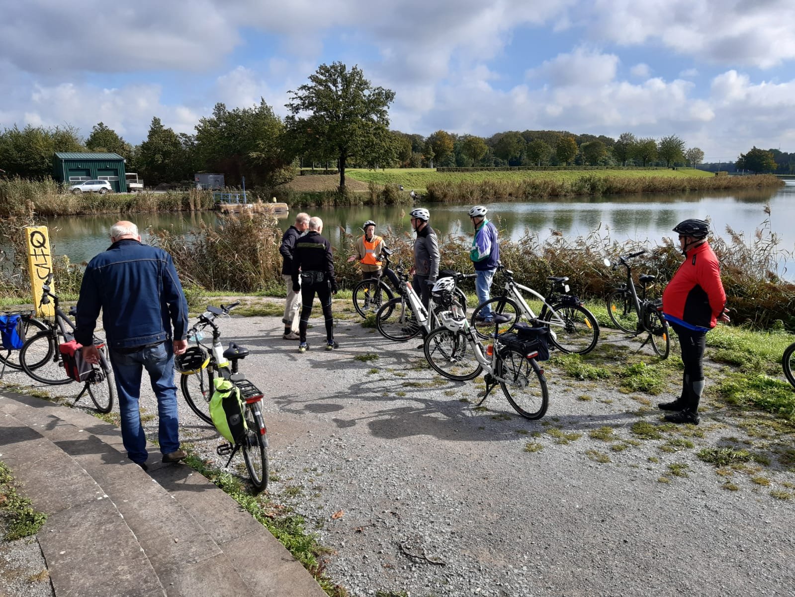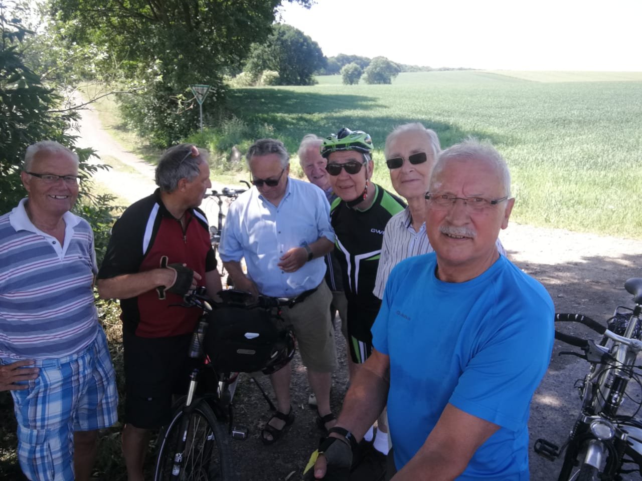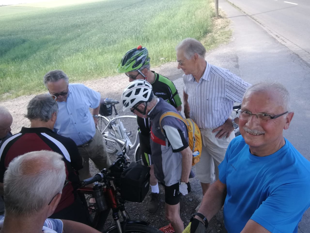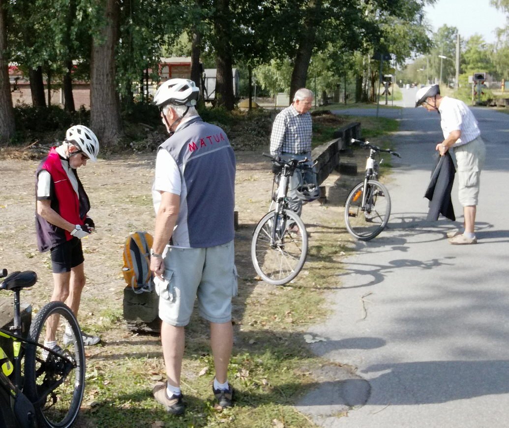 Unsere 17. Mittwochstour in diesem Jahr starteten wir wieder - wie gewohnt - vom Parkplatz an der Turnhalle in Stockum. 8 Mätuaner und ein Gastradler begaben sich unter der Leitung von Klaus Peters bei herrlichem Sonnenschein auf eine 45 km lange Rundtour mit für uns unbekanntem Ziel.