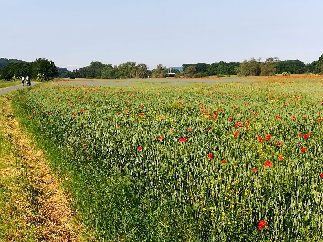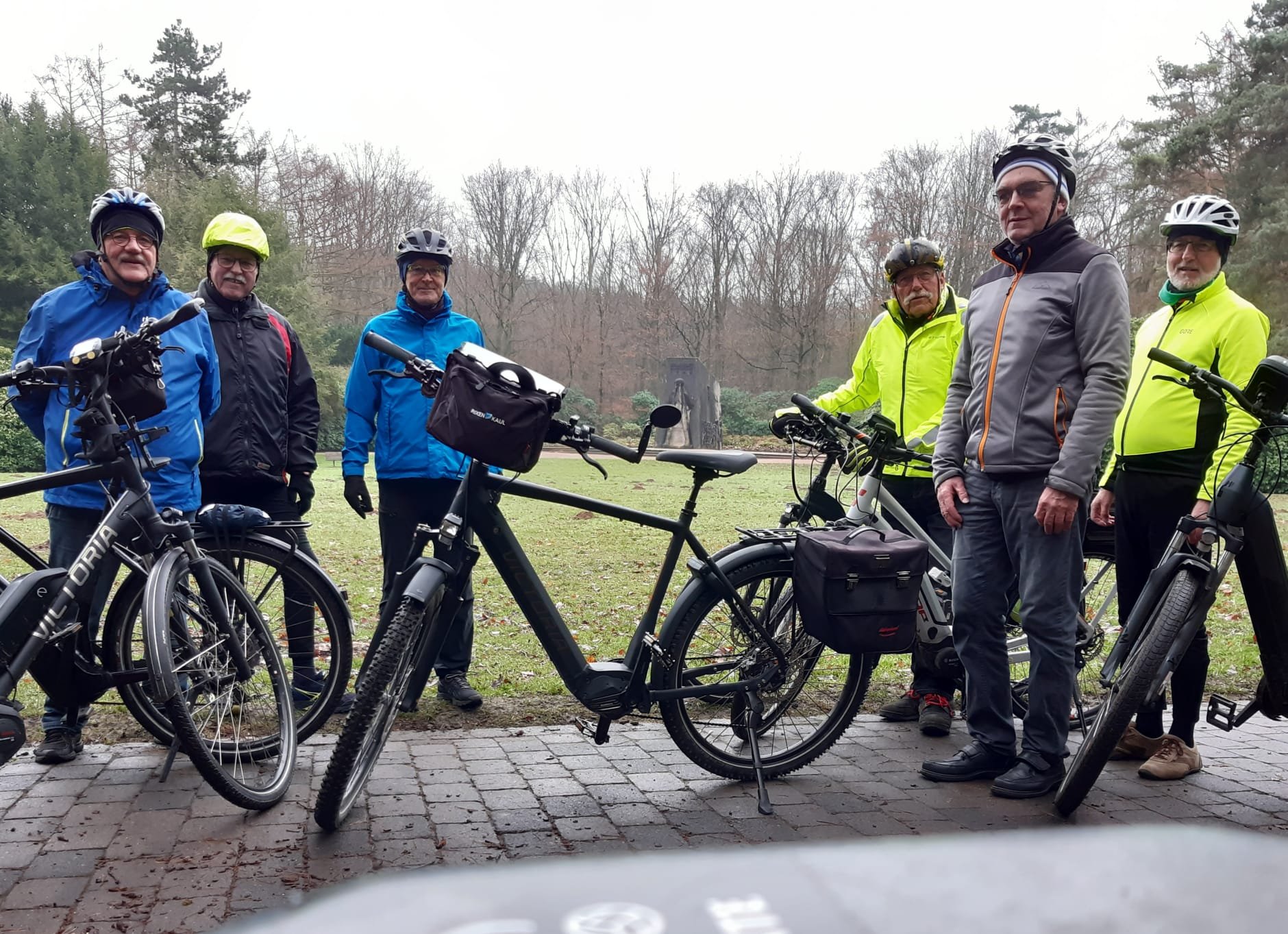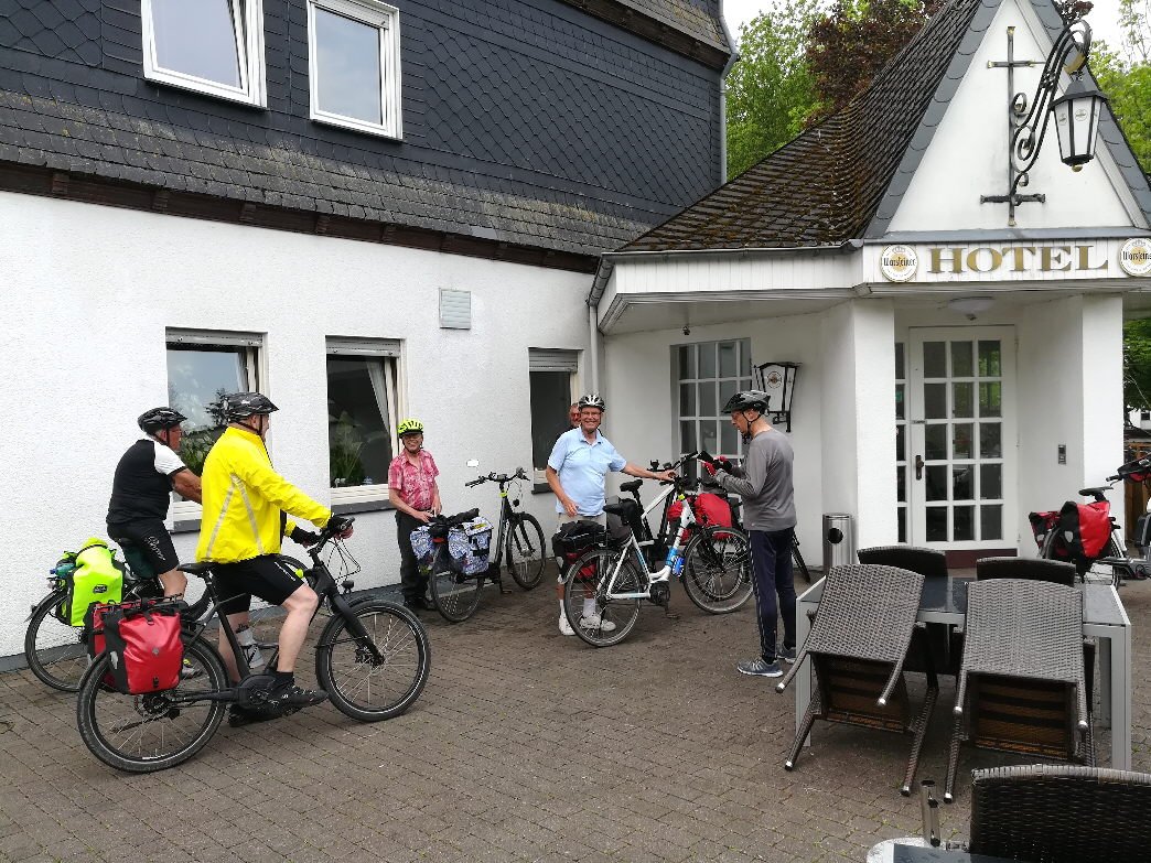 Dunkle Wolken zogen heute Morgen um 10:00 Uhr über Stockum, als sich die 5 Radler der Mätua und ein Gastradler auf dem Parkplatz an der Sporthalle eingefunden hatten. Wir überlegten kurz, ob wir die heutige Tour überhaupt durchführen sollten. Ein Blick auf das Handy, und die Wetter-App sagte uns, dass Schauer erst für den Nachmittag zu erwarten seien. Klaus, unser Tourenmanager, hob daraufhin seinen Arm und gab mit einem Handzeichen die Richtung vor.