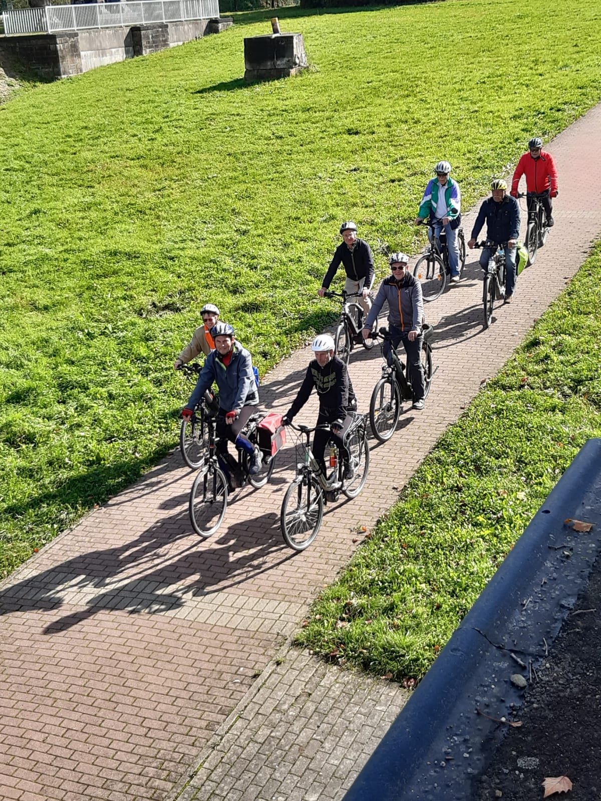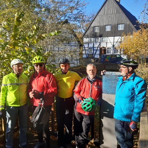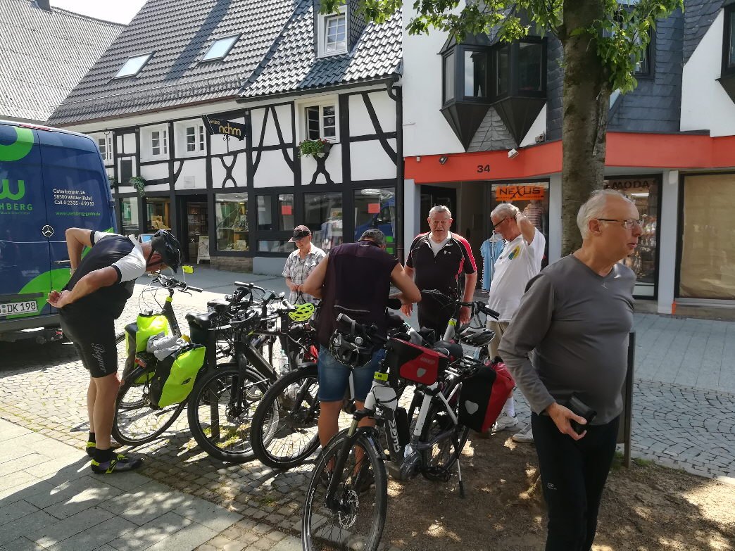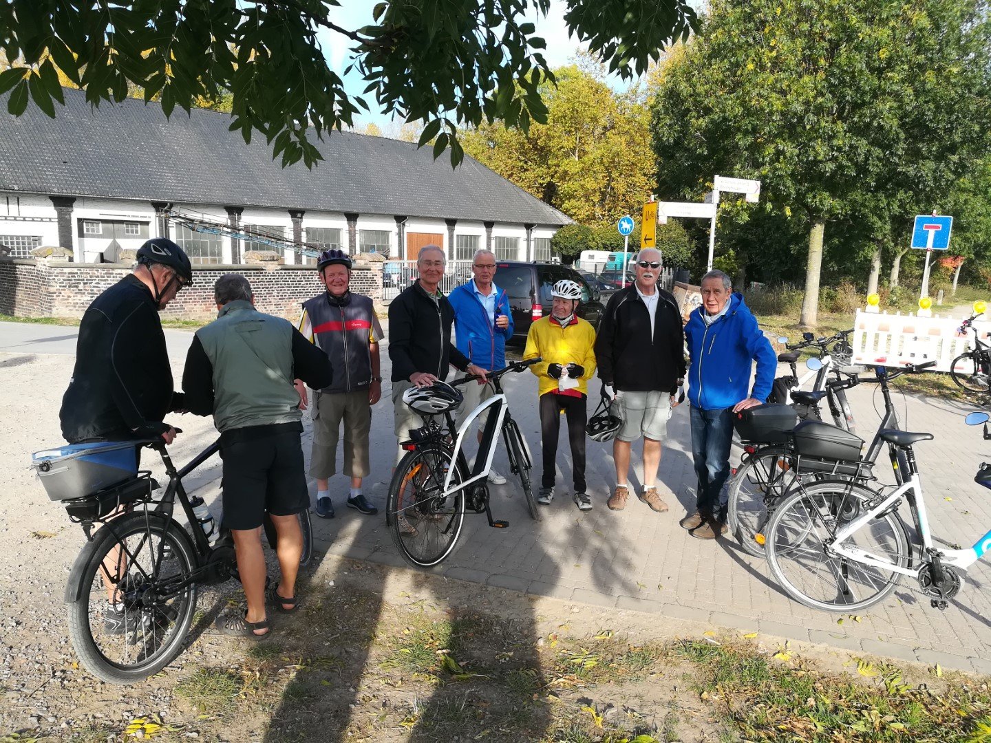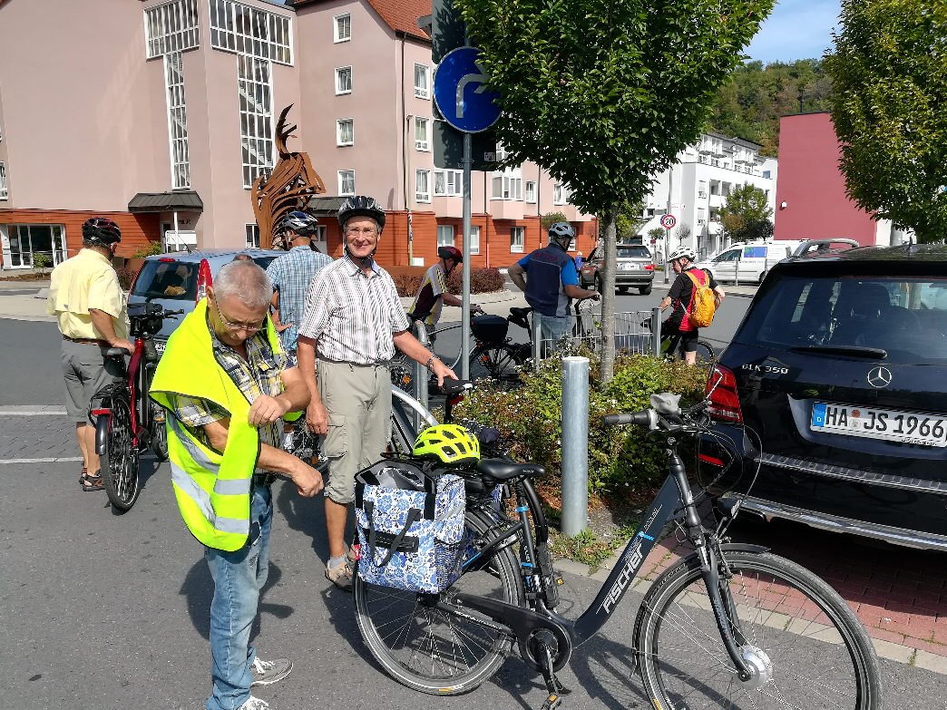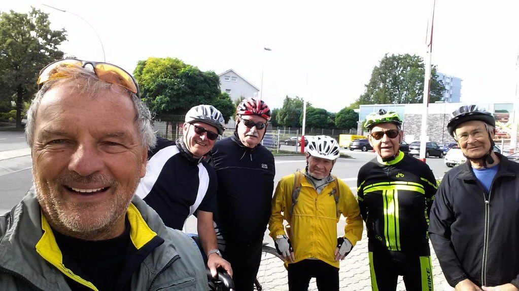 Sechs Mätuaner warteten am 19. September bei Sonnenschein um 10:00 Uhr auf dem Parkplatz an der Stockumer Turnhalle auf das Startzeichen des Bike-Event-Managers Klaus Peters. Er begrüßte uns, hob seinen rechten Arm und zeigte in Richtung Hörder Straße. Alle machten sich bereit, um den Start nicht zu verpassen. Doch dann kam ein "Stop" von Siegfried: sein gerade noch prall mit Luft gefülltes Vorderrad war platt. Tour aus für ihn und Klaus musste sich mit den verbliebenen Radlern auf den Weg machen.