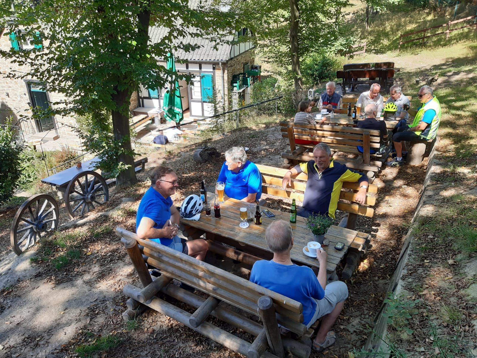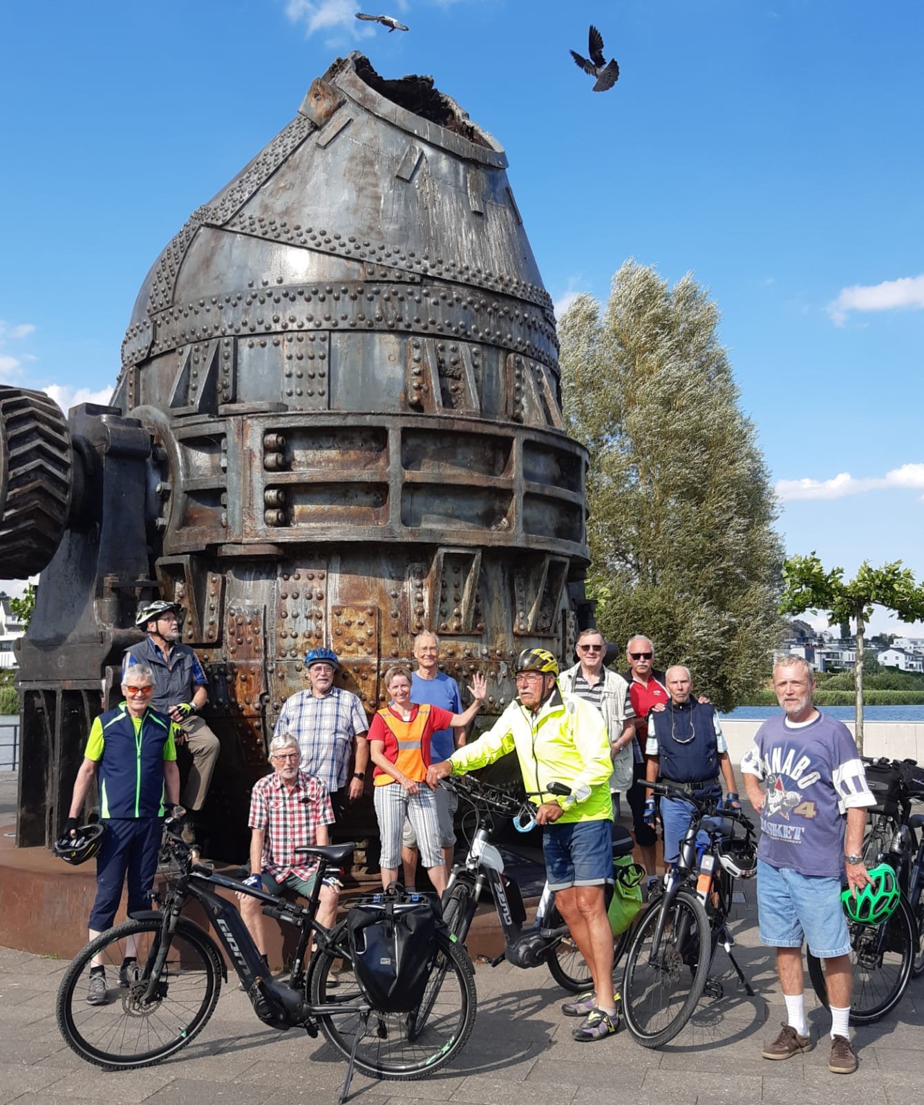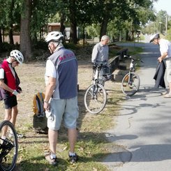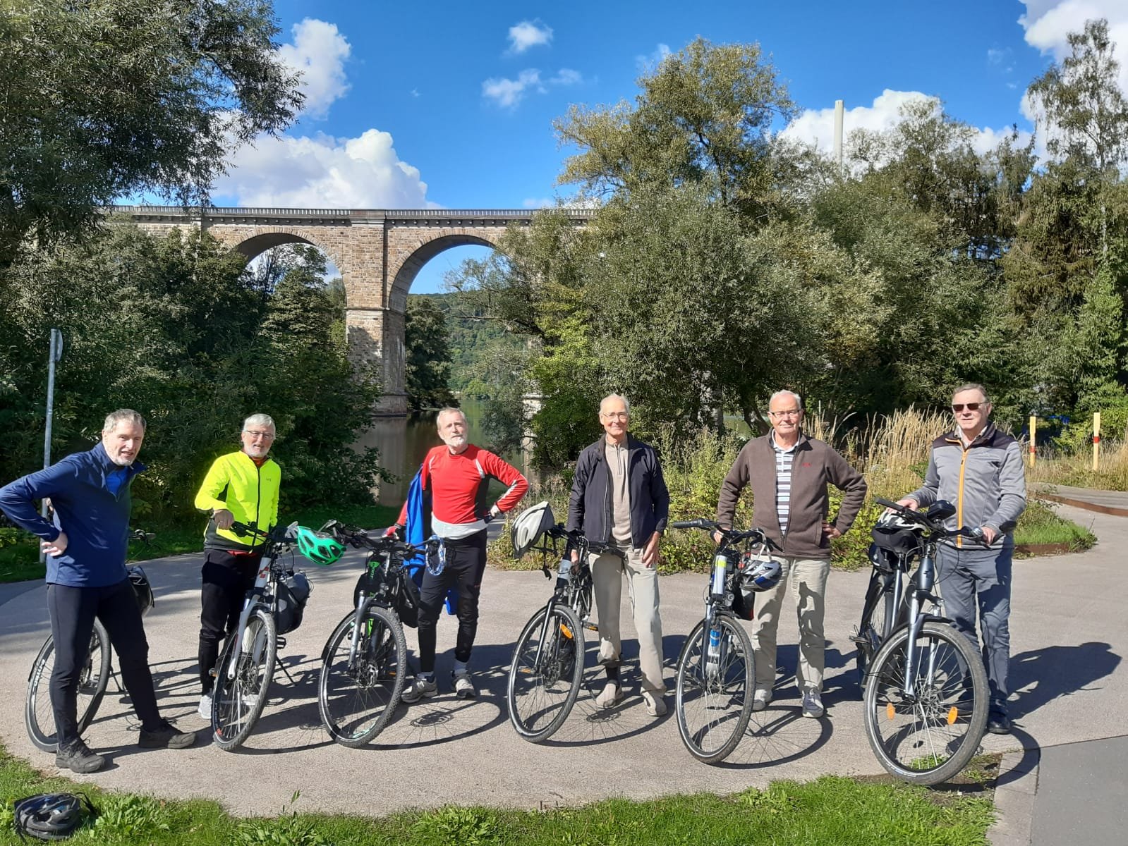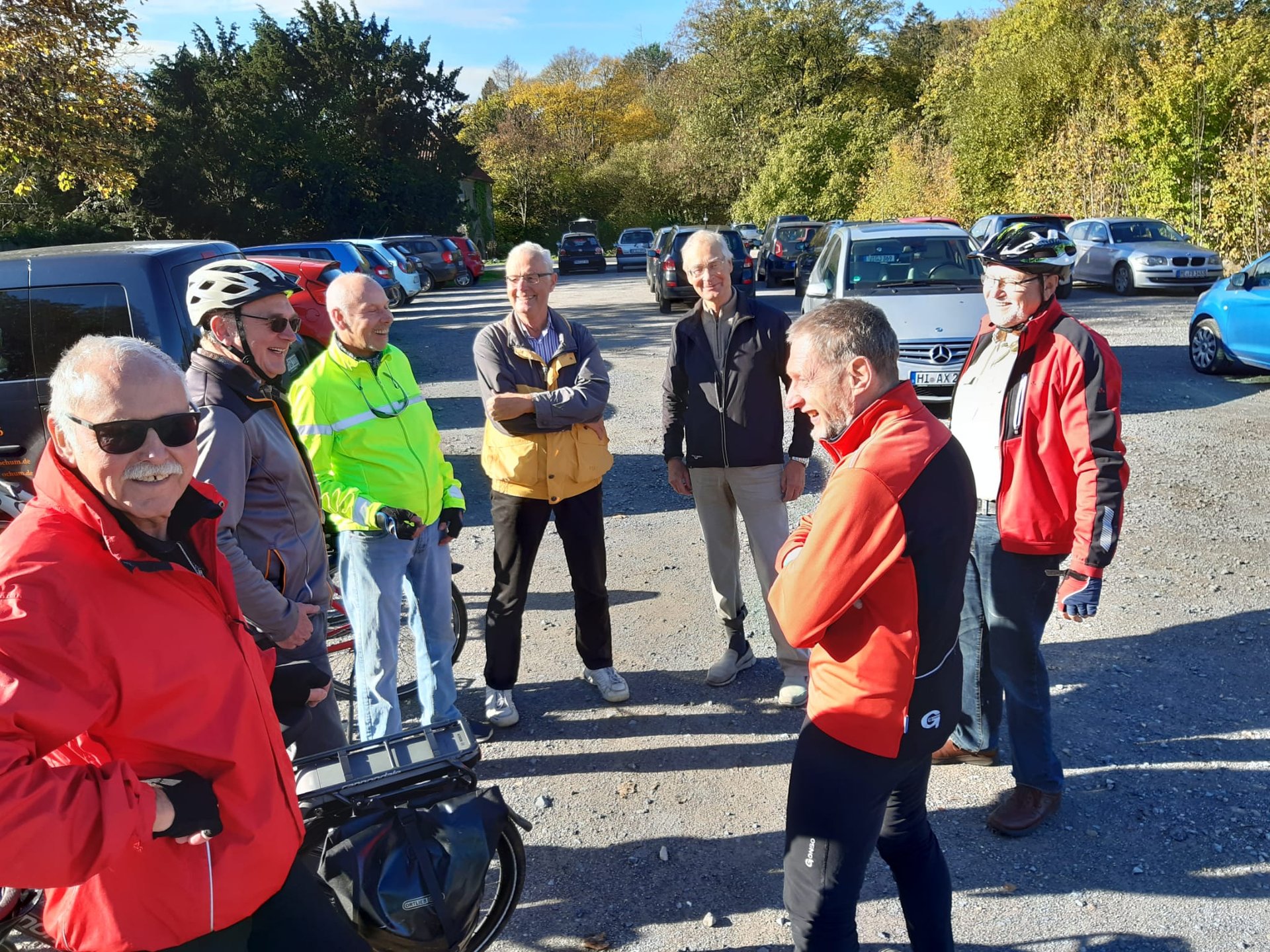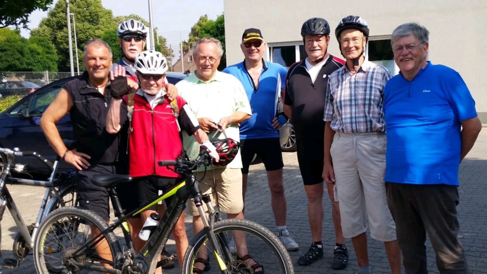 Sechs Mätuaner warteten am 19. September bei Sonnenschein um 10:00 Uhr auf dem Parkplatz an der Stockumer Turnhalle auf das Startzeichen des Bike-Event-Managers Klaus Peters. Er begrüßte uns, hob seinen rechten Arm und zeigte in Richtung Hörder Straße. Alle machten sich bereit, um den Start nicht zu verpassen. Doch dann kam ein "Stop" von Siegfried: sein gerade noch prall mit Luft gefülltes Vorderrad war platt. Tour aus für ihn und Klaus musste sich mit den verbliebenen Radlern auf den Weg machen.
