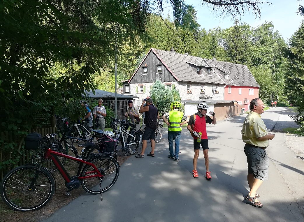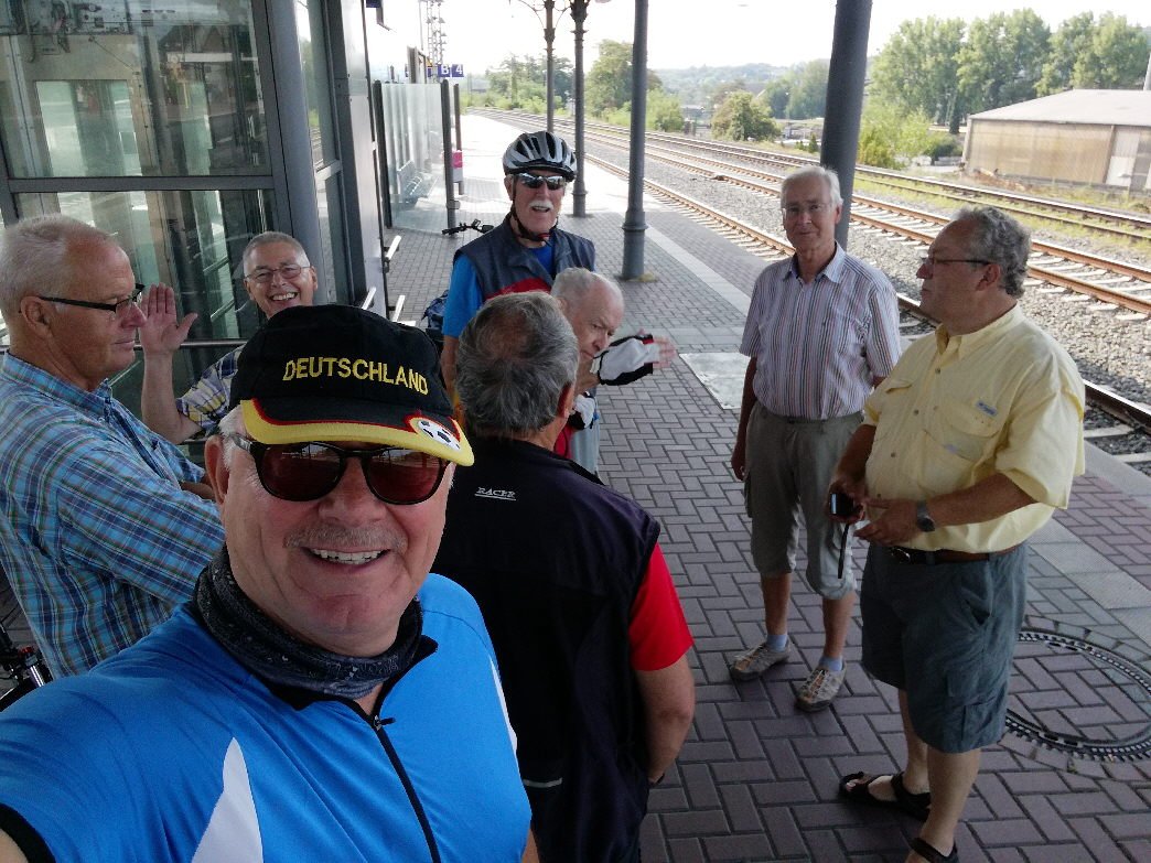 Ich kann mich noch an die Worte unseres Tourleiters Klaus von letzter Woche erinnern. Da meinte er nach unserer Hohensyburg Tour: "die Tour war schon anspruchsvoller, doch es geht noch besser"! Da wusste er schon, wo es diesen Mittwoch (20.08.2018) hingehen sollte. Er nahm die ausgefallene Ganztagestour vom 25.07.2018 wieder auf und setzte diese mit Reinhard Bergmann auf die Tagesordnung. Um 10:15 Uhr trafen sich acht Radfreunde des Tus und ein Gastfahrer am Wittener Hauptbahnhof, um mit dem Abellio-Express nach Hohenlimburg zu fahren.
