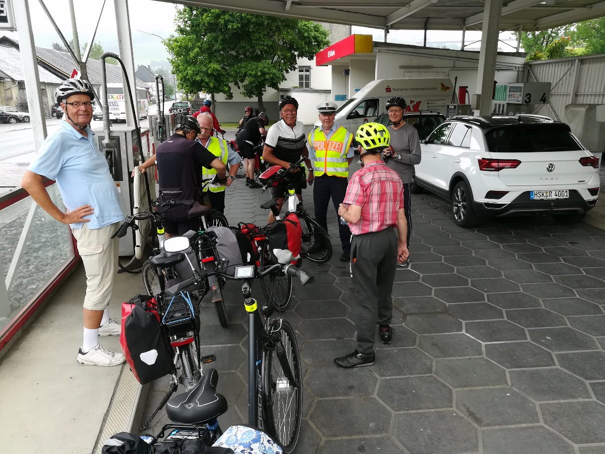 Unser "Bike-Event-Manager" und Tour Experte Klaus Peters brachte uns vom Start weg gleich wieder richtig ins Schwitzen. Denn seit er elektrisch unterwegs ist, ist es noch mühseliger ihm zu folgen.