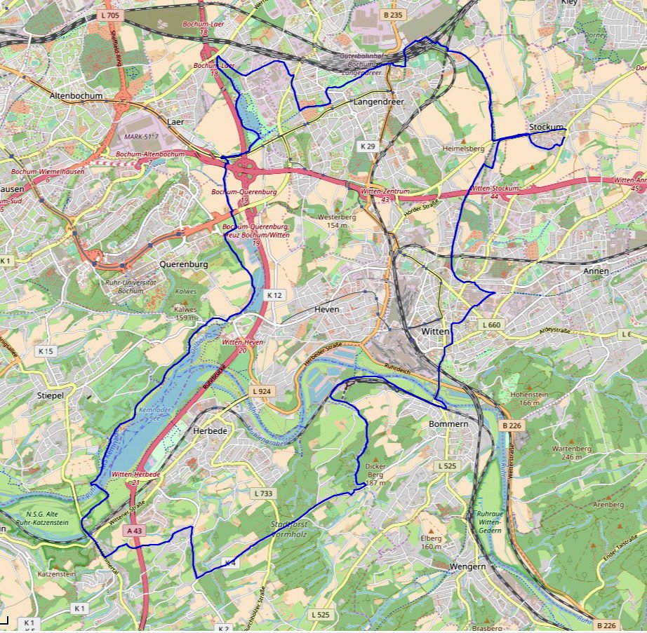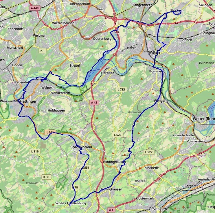 Wenn das Wetter es zulässt, treffen sich die Mätua-Radler ab sofort bis auf weiteres jeden Mittwoch um 14:00 Uhr auf dem Parkplatz an der Turnhalle in Stockum und touren unter ortskundiger Anleitung ca. 50-70 km auf allen Radwegen im Bezirk Ennepe-Ruhr, Bochum, Dortmund und Hagen. Im Folgenden werden einige der interessanten Touren beschrieben. Dabei steht die letzte an oberster Stelle.