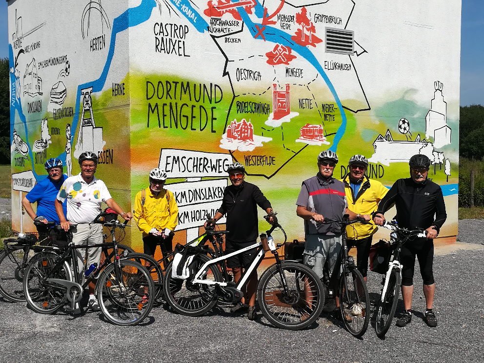 Zu unserer heutigen letzten außerplanmäßigen Mittwochstour (15.08.2018) in den Ferien, war unser Tour-Manager Klaus wieder dabei. Klaus wäre nicht unser Tourleiter, wenn er nicht auch dieses Mal eine Überraschung parat gehabt hätte. Doch erst mal radelten 7 Mann der Mätua ganz locker über den Eselsweg Richtung Dortmund.