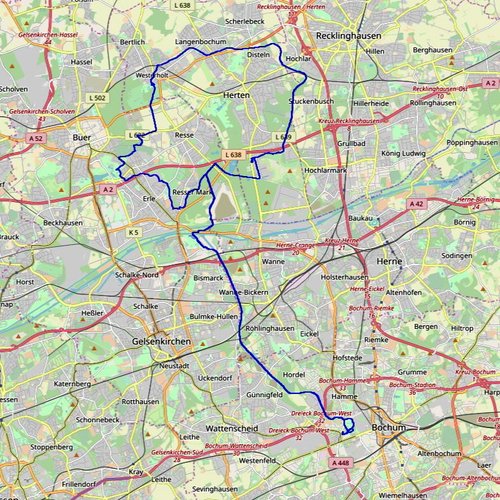 Treffpunkt für unsere Mittwochtour am 26.09.2018 war nicht wie gewohnt der Parkplatz an der Stockumer Turnhalle, sondern die Jahrhunderthalle in Bochum. Der Ausgangspunkt eignet sich hervorragend für Touren über die Erzbahntrasse Richtung Dorsten und Umgebung. Drei unserer sechs Teilnehmer dieser Tour hatten auch das entsprechende Equipment für ihr Fahrzeug, um die Räder transportieren zu können. Punkt 10:00 Uhr gab unsere Tour-Manager Klaus Peters das Zeichen zum Start.
