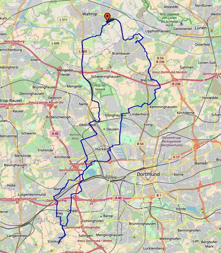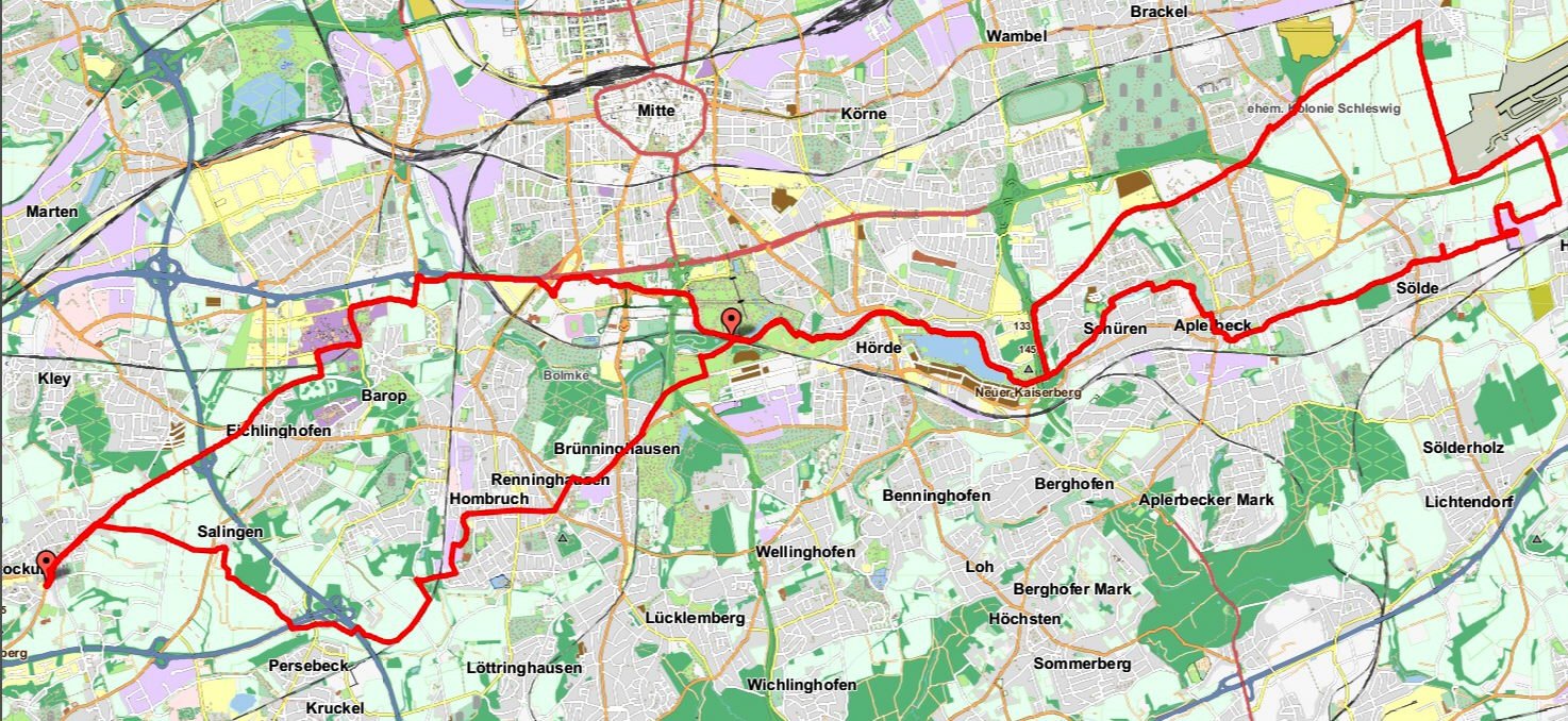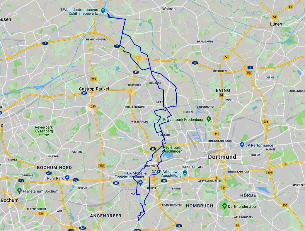 Die Fahrt durch den Dorneywald und Dortmund Kley, entlang dem Wischlinger-Weg ließ auf eine kurze Tour hoffen. Aber zu früh gefreut! Nachdem wir Dortmund-Huckarde hinter uns gelassen hatten und in weiter Ferne die Lagerhallen von Ikea erblickten, waren wir nicht mehr so sicher.