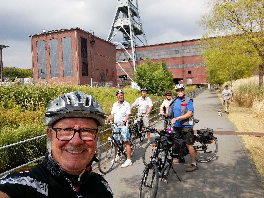 Das Wetter war nach den letzten Hitzetagen für unsere heutige Tour am 08.08.2018 ideal: der Himmel bewölkt, ab und zu fielen ein paar Tropfen Regen, und die Temperatur lag bei 29 Grad. Ich hatte mir die Tour-Route ausgedacht und mit unserem Tour Manager abgesprochen. Leider konnte Klaus aus gesundheitlichen Gründen die Tour nicht antreten und somit machten sich fünf der TuS Radler auf den Weg zur Zeche Ewald nach Herten.
