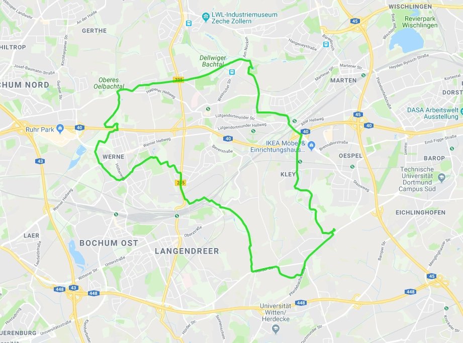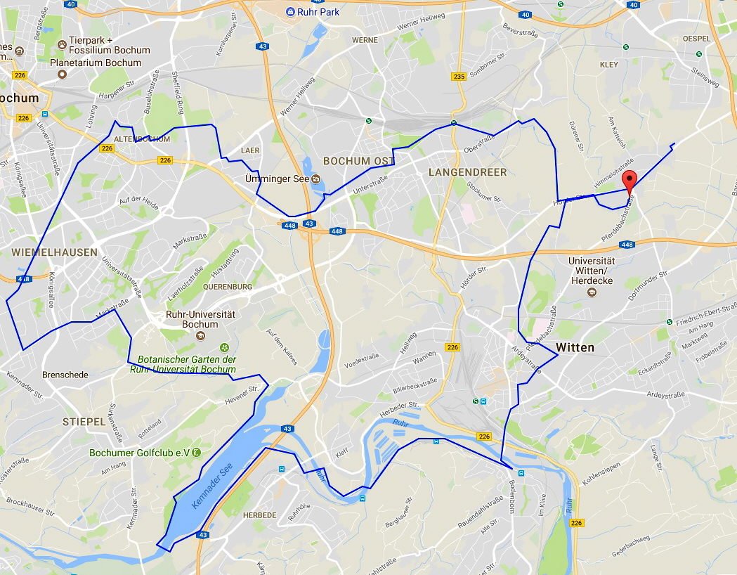 An diesem Mittwoch hatte ich eine Tour von Klaus Peters aus dem Jahr 2017 wieder aufleben lassen, an denen 6 Radfreunde der Mätua teilnahmen. Über den Eselsweg und Langendreer fuhren wir in einem Bogen um das ehemalige Opel Werk III Richtung Lütgendortmund vorbei an Schloss Dellwig,