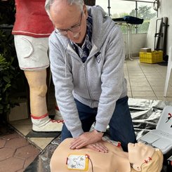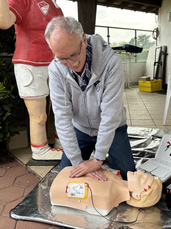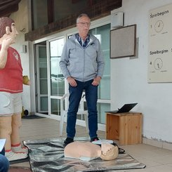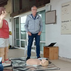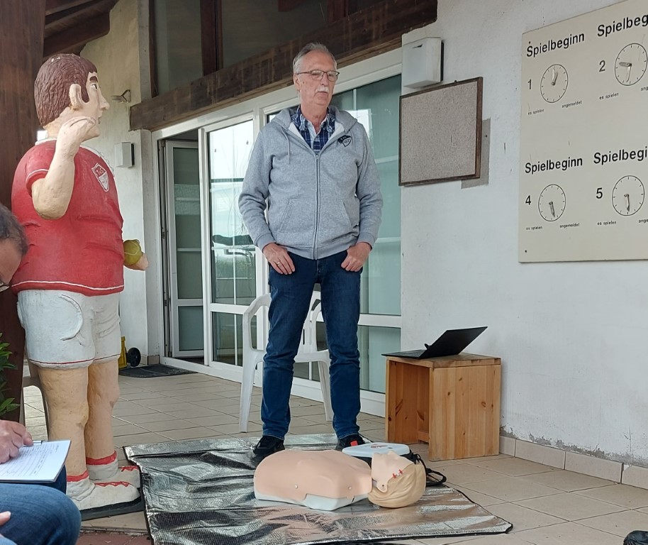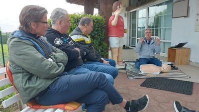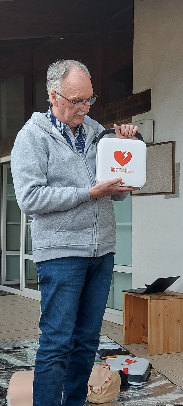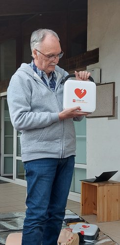 Defibrillator ..., was für ein schwieriges Wort, für den Ernstfall Leben retten zu können. Wie auch immer, für die meisten Teilnehmer der Abteilungen Tennis und Bogensport, die sich am Sonntag, 14. April, zur Sportschauzeit(!) am Pavillon der Tennisabteilung an der Pferdebachstraße 238 trafen, war es Motivation und Ansporn zugleich, etwas Neues zu dem Thema „Lebensrettende Sofortmaßnahmen“ kennen zu lernen und damit einen Teil ihrer Erste-Hilfe-Ausbildung aufzufrischen. Jürgen Kaufmann, der beim TuS Witten Stockum seit Jahren u.a. für den Bereich Sicherheit zuständig ist und auch als Erste-Hilfe-Ausbilder tätig sein darf, vermittelte allen Anwesenden mit seinem fundiertem Wissen und sehr anschaulich, was in Fällen zu tun ist, wenn jemand mit Herzstillstand oder ähnlichen lebensbedrohenden Herzproblemen in Not ist und wir als Helfende zugegen sind. An die Mund-zu-Mund-Beatmung und an die Herzdruckmassage konnten sich viele von uns noch erinnern. Doch dass man mit einem Defibrillator einem Herzstillstand, Kammerflimmern des Herzens und einer tachykarden Herzrhythmusstörung (auch als Herzrasen bekannt) unter Umständen im Notfall - bis ein Notarzt kommt - entgegenwirken und somit Menschen das Leben retten kann, war nicht allen bekannt. Jürgen Kaufmann wies uns deshalb in den Gebrauch und die Arbeitsweise des Defibrillators ein, so dass jeder von den anwesenden Teilnehmern, das Gerät zusätzlich zu Herzdruckmassage und Mund-zu-Mund-Beatmung im Notfall sicher bedienen kann. Hilfreich ist dabei sicherlich, dass das Gerät im Einsatzfall ganz konkrete sprachliche Anweisungen erteilt, so dass man keine Angst haben muss, einen Fehler zu machen. Heinz Middelmann vom Tennissport und Präsidiumsmitglied des Vereins erklärte sich bereit, über die Funktionsfähigkeit und Einsatzbereitschaft des Defibrillators, der für die Tennisabteilung und den Bogensport im Pavillon der Tennisabteilung installiert werden wird, zu wachen. Hoffen wir, dass wir das Gerät nie einsetzen müssen …