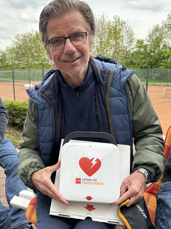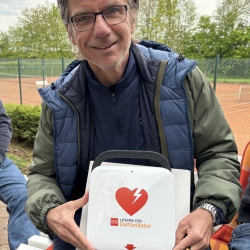 Was lange währt, wird endlich gut: nun auch ein Defibrillator auf der Bogen- und Tennissportanlage.