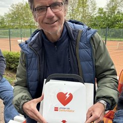 Was lange währt, wird endlich gut: nun auch ein Defibrillator auf der Bogen- und Tennissportanlage.