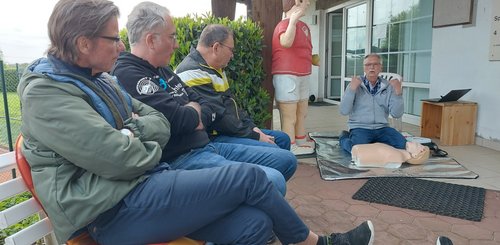 Defibrillator ..., was für ein schwieriges Wort, für den Ernstfall Leben retten zu können. Wie auch immer, für die meisten Teilnehmer der Abteilungen Tennis und Bogensport, die sich am Sonntag, 14. April, zur Sportschauzeit(!) am Pavillon der Tennisabteilung an der Pferdebachstraße 238 trafen, war es Motivation und Ansporn zugleich, etwas Neues zu dem Thema „Lebensrettende Sofortmaßnahmen“ kennen zu lernen und damit einen Teil ihrer Erste-Hilfe-Ausbildung aufzufrischen. Jürgen Kaufmann, der beim TuS Witten Stockum seit Jahren u.a. für den Bereich Sicherheit zuständig ist und auch als Erste-Hilfe-Ausbilder tätig sein darf, vermittelte allen Anwesenden mit seinem fundiertem Wissen und sehr anschaulich, was in Fällen zu tun ist, wenn jemand mit Herzstillstand oder ähnlichen lebensbedrohenden Herzproblemen in Not ist und wir als Helfende zugegen sind. An die Mund-zu-Mund-Beatmung und an die Herzdruckmassage konnten sich viele von uns noch erinnern. Doch dass man mit einem Defibrillator einem Herzstillstand, Kammerflimmern des Herzens und einer tachykarden Herzrhythmusstörung (auch als Herzrasen bekannt) unter Umständen im Notfall - bis ein Notarzt kommt - entgegenwirken und somit Menschen das Leben retten kann, war nicht allen bekannt. Jürgen Kaufmann wies uns deshalb in den Gebrauch und die Arbeitsweise des Defibrillators ein, so dass jeder von den anwesenden Teilnehmern, das Gerät zusätzlich zu Herzdruckmassage und Mund-zu-Mund-Beatmung im Notfall sicher bedienen kann. Hilfreich ist dabei sicherlich, dass das Gerät im Einsatzfall ganz konkrete sprachliche Anweisungen erteilt, so dass man keine Angst haben muss, einen Fehler zu machen. Heinz Middelmann vom Tennissport und Präsidiumsmitglied des Vereins erklärte sich bereit, über die Funktionsfähigkeit und Einsatzbereitschaft des Defibrillators, der für die Tennisabteilung und den Bogensport im Pavillon der Tennisabteilung installiert werden wird, zu wachen. Hoffen wir, dass wir das Gerät nie einsetzen müssen …