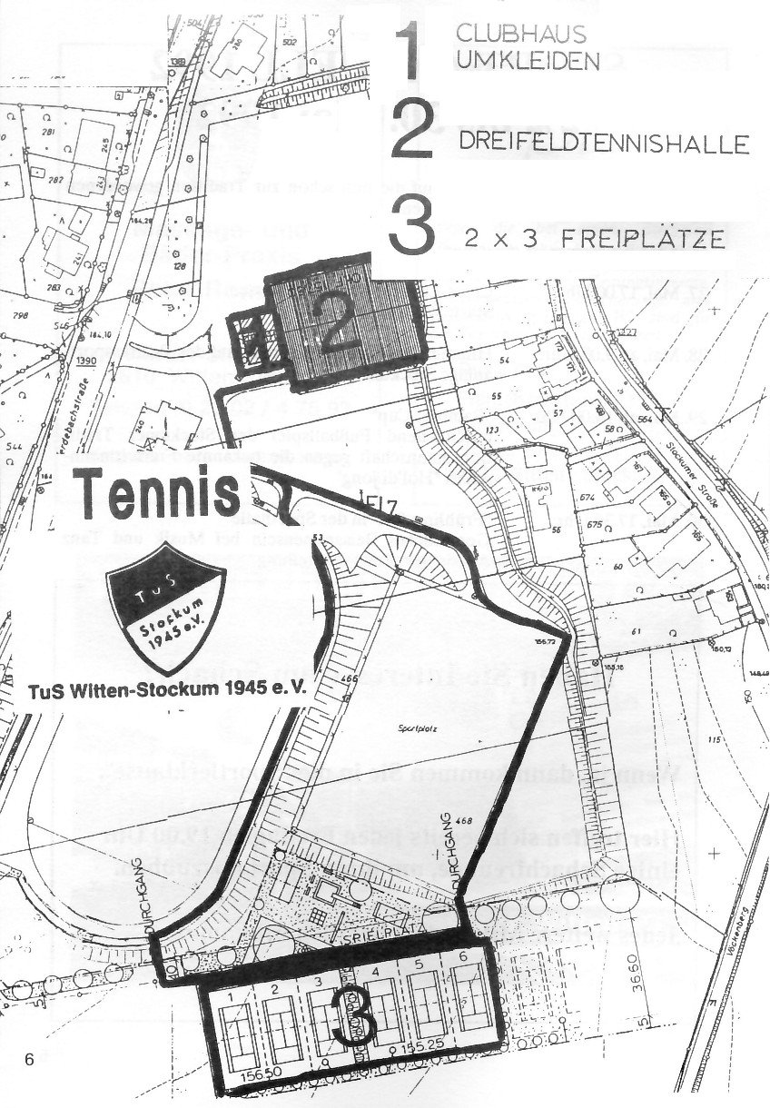 Im Dezember 1989 wurden Pläne durch das Architekturbüro Wess erstellt und mit der Stadt Witten erläutert. Im März 1990 wurde eine erneute Bauvoranfrage an die Stadt Witten gestellt. Das Planungsamt wies darauf hin, dass für den Stockumer Süden ein regionales Rahmenprogramm erstellt würde, wobei unser Bauvorhaben Berücksichtigung finden sollte. Dieses Programm hat sich über 1 1/2 Jahre hingezogen. Im Oktober 1992 erhielten wir von der Stadt Witten die Nachricht, dass unsere Vorschläge zum Bau einer Tennisfreianlage mit 2 x 3 Tennisplätzen und Pavillon akzeptiert würden, wobei die Größe der Ergänzungsflächen noch zu klären wären. Der damalige 1. Vorsitzende und heutige Ehrenvorsitzende des Gesamtvereins Willi Remmert sah nun die Zeit gekommen, eine Tennisabteilung zu gründen. Am 02.07.1993 wurde die Gründungsversammlung in die „Sportlerklause” einberufen. Ein wesentlicher Punkt der Tagesordnung war die Wahl von 2 Abgeordneten zur Vertretung der Abteilungsinteressen im erweiterten Vorstand des TuS Stockum. Aus der Versammlung wurde beantragt, 4 Personen als Vertreter der Tennisabteilung in den erweiterten Vorstand des Gesamtvereins aufzunehmen. Dieser Vorschlag wurde einstimmig angenommen. Vorgeschlagen und einstimmig gewählt wurden Hans Oberdorfer, Heinz Middelmann, Ulla Perner und Bärbel Kuypers. Die Vertreter nahmen die Wahl an. Bis zur ersten Jahreshauptversammlung der neu gegründeten Tennisabteilung führte der Kassierer des geschäftsführenden Vorstandes des Gesamtvereins Reinhard Linker die Geschäfte der Tennisabteilung.