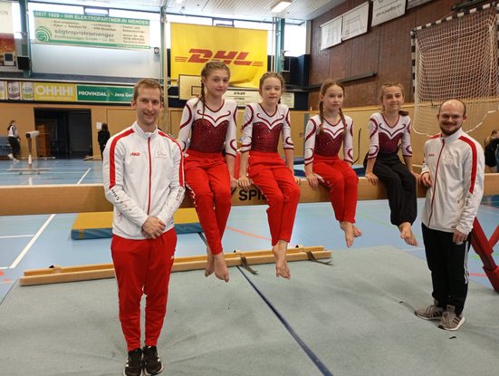 Einen sensationellen Start legten die jungen TuS-Nachwuchs-Turnerinnen zum Start in die Bezirksliga LK 4 gegen die Konkurrenz in Menden hin. Das Mini-Team mit Marlene Schwefer, Eileen Mostert, Leni Kunert und Selina Ayas wurden von den beiden Trainern Robin Günther und Patrick Werner betreut. Der Start am „Zitterbalken“ war zunächst von Nervosität geprägt, Marlene gelang eine Tagesbestleistung von 12,20 Pkt.