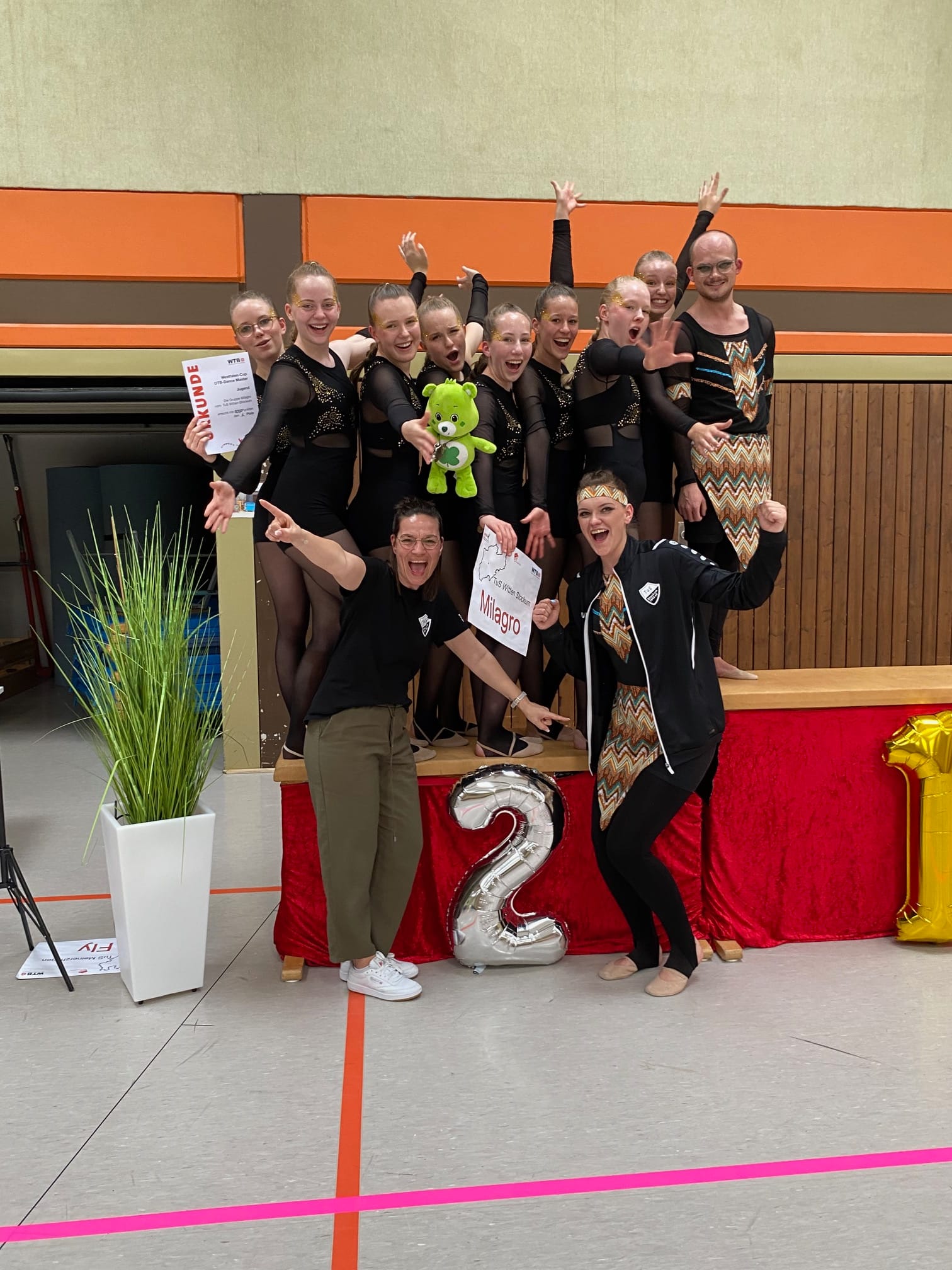 Die Gruppe Milagro startete ebenfalls im Bereich Jugend Master und ertanzte sich mit der Tanzgestaltung zur „4. Dimension“ den Titel des Vizewestfalenmeisters. Mit 17.50 Punkten und nur 2/10 Abstand zu Platz 1, qualifizierten sich die Milagros mit Platz 2 für die Teilnahme an der Deutschen Meisterschaft.