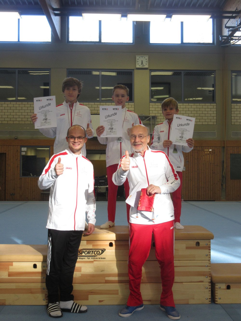 Die Stockumer Schüler und Jugendturner konnten bei den NRW Talentmeisterschaften in Essen sich über 2 erfolgreiche Platzierungen freuen. Ben Heiler AK 12/13 turnte in der LK 2 und konnte mit 57.80 Pkt. mit einer Bestleistung am Boden mit 11,10 Pkt. über Gold freuen. Silber gab es für Moritz Albuschat AK 10/11 ( LK 3) der durch 2 Stürze einige Punkte liegen ließ aber mit 53,60 Pkt. und einer guten Bodenübung mit 10,60 Pkt. von seinen Trainer Robin Günther eine positive Anerkennung erhielt. Nachwuchstalent Vincent Koster AK 7 war von der Konkurrenz überrascht und hatte keinen guten Tag erwischt, mit 48.25 Pkt. blieb nur der 11. Rang, ohne die beiden Fehler am Boden und Pilz , was 4 Punkte kostete wäre ein 3. Rang möglich gewesen. Mit 9,50 Pkt. am Sprung war er dennoch einer der Punktbesten in der Konkurrenz. Trainer Peter Dekowski ist überzeugt, dass sein junges Talent im nächsten Jahr seine Konkurrenz überraschen wird.