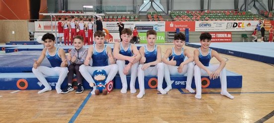 Das junge neue TuS/TZ-Team konnte am Seitpferd einen soliden Start hinlegen und musste jedoch durch Nikita Prohorov nur 11,00 Pkt. einen Sturz am „Lieblingsgerät“ verbuchen. Erfreulich hier die Leistung des Jungen Schüler Nathan Skulkin mit 11,25 Pkt. Dann folgte eine Tages-Mannschaftsbestwertung von 37,35 An den Ringen durch Nathan Skulkin 12,55 Pkt. sowie Florian Grela und Nikita Prohorov mit je 12,40 Pkt. Am Boden wieder etwas Pech durch Stürze , auch hier Bester Bochumer Nathan Skulkin mit 11,50 Pkt. Auf Grund einer Fußverletzung konnte Nikita Prohorov die Geräte am Boden und Sprung nicht mitturnen, was sicherlich in der Punktbilanz sich negativ auswirkte. Am Barren leider ein weiterer Sturz von Florian Grela mit einer Wertung immerhin noch von 10.35 Pkt. , hier punktete aber Nikita Prohorov mit 11,70 Punkten. Mit einer Bestleitung konnte dann Florian Grela am Sprungtisch mit Tsukahara und 12,90 Punkten für sein Team überzeugen. Am Königsgerät „Reck“ gelang insgesamt ein guter Abschluss mit 2 Elferwertungen Von Nikita Prohorov und Florian Grela. Trainer Shalva Dalakishvili und Petro Lisak konnten immerhin feststellen, wären die vielen Stürze nicht gewesen, hätte man das Ausrichter-Team SC Cottbus von Rang 2 verdrängen können. Die jungen Nachwuchsturner Kerim Kök sowie die Zwillinge Luis und Luca Jimenez Fernandez zeigten bei ihren Geräte-Einsätzen eine stabile Leistung, die noch ausbaufähig ist.